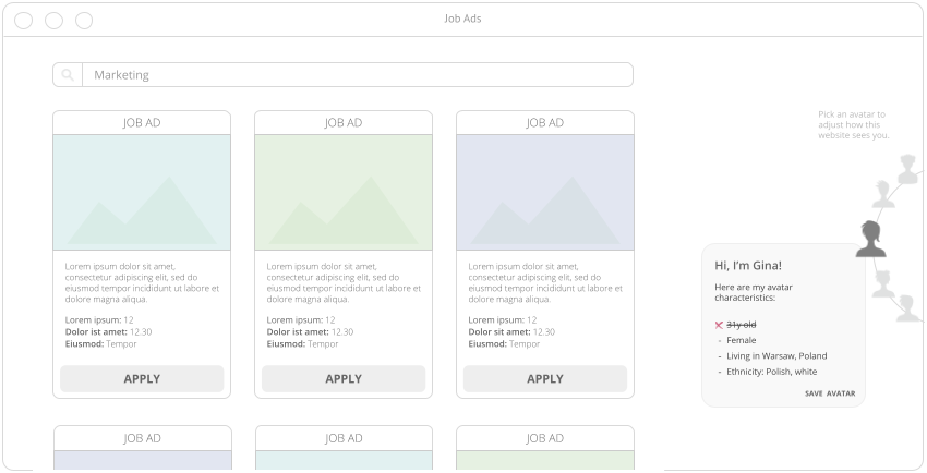 It is vital for the user to understand why they are seeing a specific job ad, what ads they might be missing out on (via Ad Repositories) and to have direct control over the ads they receive. To reach these goals, our guidelines are targeted towards platforms. The main tool we propose is an “Avatar”: a user-friendly, gamified tool to visually communicate the information collected by the platform and the attributes used to target the user with job ads.