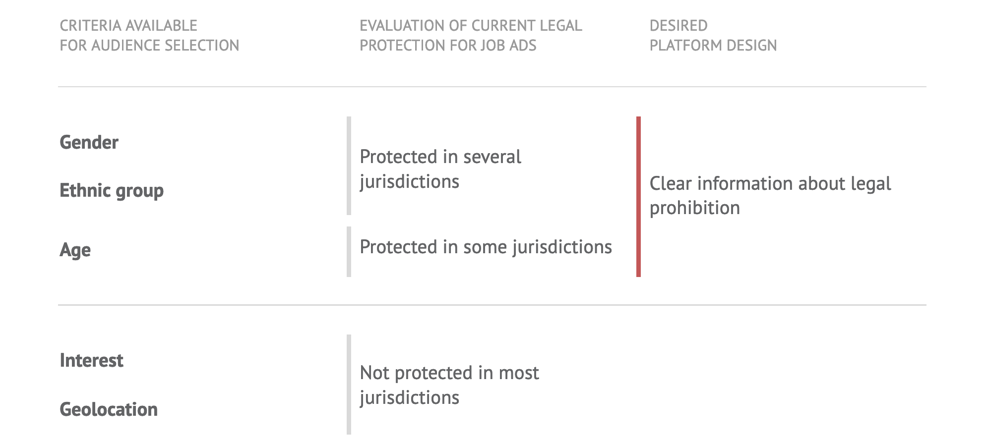 - oversight bodies, who can check if job ads are delivered to the audience based on legal categories;