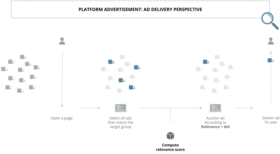 - ad delivery by platforms, which mainly includes carrying out the automated ad action and optimizing ads for relevance; and